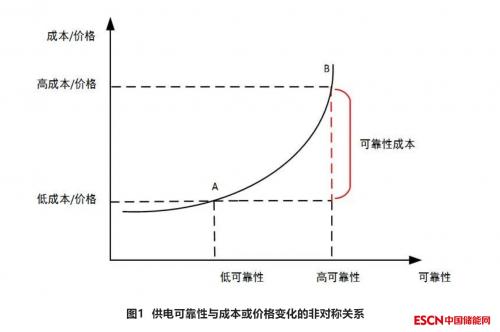 电力工业资本密集与电力负荷需求尖峰化及不确定性的特征,客观地产生了满足用电需求的经济性与可靠性的两难选择问题。高可靠性供电必然产生相对更大的投资和运维成本,形成很高电价;较低可靠性供电会形成相对更低的投资和运维成本,产生更容易接受的供电经济性和价格。供电可靠性与供电成本或价格的这种非对称关系如图1所示,这样,电力保供本质上是电价与可靠性水平的组合选择问题。可靠性成本如果不由国有电力企业或国家承担,就只能由高负荷时段甚至电力短缺时段用电的用户承担。在用户数量多、用电负荷特性信息(包括电价与可靠性需求与效用信息)组合不对称且经常变化的情况下,在激励相容约束条件下吸收用户参与或选择是最有效的方式。比如用户在获得补偿后减少或转移尖峰时段的负荷需求,只要补偿水平低于减少或转移负荷对应的投资与运维等成本。不同可靠性需求的用户的理性选择会形成同时有利用户和电力系统的“双赢”效果。