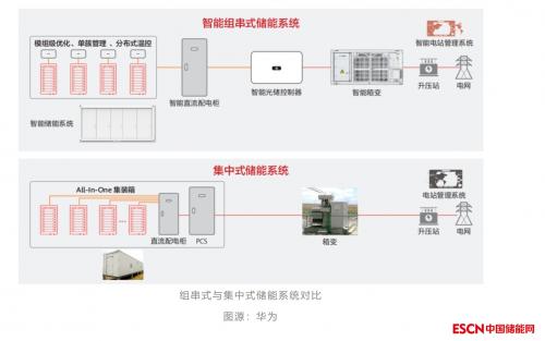 目前业内电池储能系统主要采取集中式PCS,多组电池并联将引起电池簇之间的不均衡;组串式PCS可以实现簇级管理,提升系统寿命,提高全寿命周期放电容量,组串式PCS规模化应用趋势已见雏形。比如华能黄台100MW/200MWh项目,是国内首个采用组串式PCS架构的大型储能电站(PCS由上能电气提供);山东德州林洋光储3MW/6MWh项目也采用该系统架构(华为提供整套系统)。