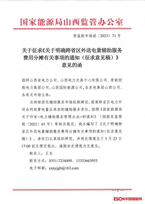 中国储能网讯:近日,发布了《关于征求《关于明确跨省区外送电量辅助服务费用分摊有关事项的通知(征求意见稿)》意见的函》。