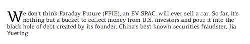 我们不认为Faraday Future(一家借壳上市的纯电车企),会卖出一辆汽车。