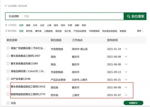 此外,OPPO开始招聘汽车制造岗位的招聘信息,更加坐实了这一传闻,目前OPPO开始在官方招聘网站招聘包括智能驾驶规控算法工程师和整车系统集成测试工程师等一系列汽车制造岗位。