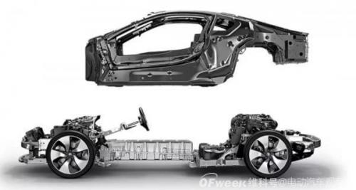看下Canoo的底盘和座舱组合,有没有眼熟?其实早在2014年发布的i3就已经是这种构成了。当年的宝马把它称为“LifeDrive结构”,由一个铝制底盘和一个碳纤维加固的驾驶座舱组成。