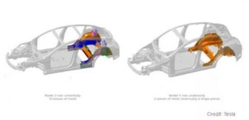 4.配合特斯拉前舱和后地板的一体压铸结构,零件数量大幅减少。