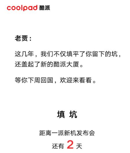 深受乐视牵连的酷派,在新机发布会之前,还不忘自揭伤疤,专门制作海报内涵贾跃亭,“这几年,我们不仅填平了你留下的坑,还盖起了新的酷派大厦。等你下周回国,欢迎来看看。”