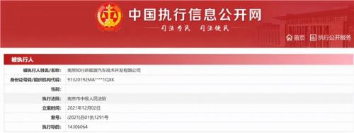 近来,拜腾汽车又传来坏消息。据中国执行信息公开网显示,12月2日拜腾汽车关联公司南京知行新能源汽车有限公司新增一条1430万元的执行标的。