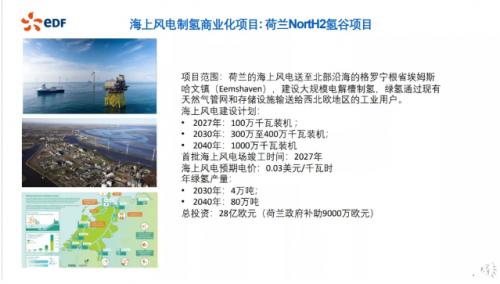 除此以外,法国电力还在积极发展其他区域的海上风电,集团有600万千瓦的海上风电项目,处于在建或者开发的不同阶段。美国新泽西海岸,有一个250万千瓦的海上风电项目,目前已经获得了海域使用权和购电协议,在这个项目中,法国电力计划在陆上变电站建设一个5-10兆瓦的电解槽。