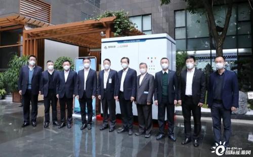 ▲双方参观“梯次电池配用电柜式储能系统”后合影
