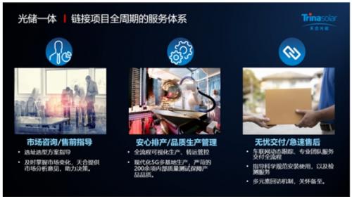 天合光能工商业光储解决方案,不光筛选最适配的产品,还有高效系统的方案,以及专业的技术团队,为客户提供一站式全周期的服务体系。服务团队不仅提供售前选址、选型指导和市场分析,并且排产流程采用全流程可视化生产和5G多基地生产,产品需要进行200余项内部测试,以达到产品最高交付标准。售后方面,拥有多元素回访机制,关怀备至,确保客户无忧使用。