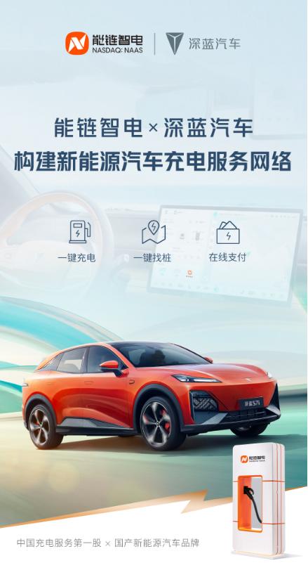 根据协议,能链智电依托自身数字化能力,为深蓝汽车提供覆盖全国的充电网络,用户可通过深蓝汽车APP及车机系统,在线查询附近充电站的价格、位置、车位等信息,并通过智能导航前往充电场站,使用高效、便捷的一键充电、在线支付等多种服务。