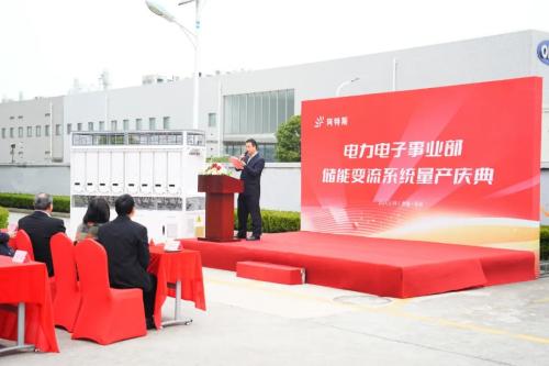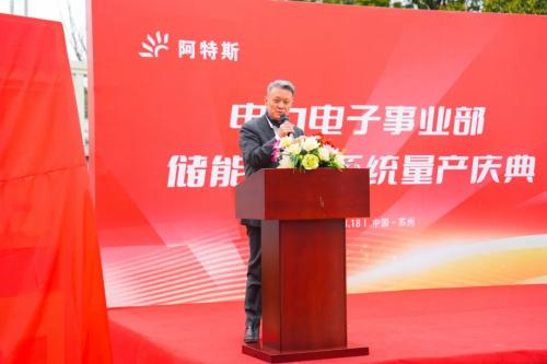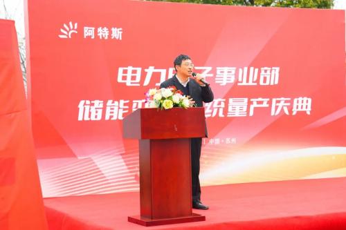阿特斯逆变器事业部总裁王丰彦在致辞中表示,电力电子事业部紧密围绕着集团“四轮驱动,光储先锋”的发展战略,继320kW组串式光伏逆变器量产后,PCS储能变流系统的量产是电力电子事业的又一重要里程碑。这一成果的取得离不开全体员工的辛勤付出和团结协作,也离不开集团各级领导的大力支持。