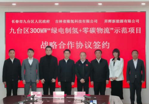 近日,昇辉新能源有限公司(下文简称“昇辉新能源”)与吉林省长春市九台区人民政府、吉林省隆氢科技有限公司签约九台区300MW“绿电制氢+零碳物流”示范项目战略合作协议。