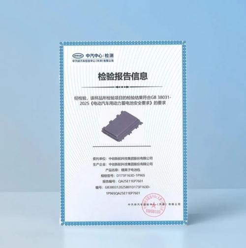 新国标GB38031-2025作为国家市场监管总局发布的强制性标准,对动力电池包的安全性指标提出了更为严苛的要求,将于2026年7月1日正式实施。中创新航凭借多年深耕电池领域的技术积累,坚持贯彻执行行业最严苛的安全性能等指标要求作为企业标准,在新国标推出后,中创新航产品率先一次性完成电池系统全项测试。