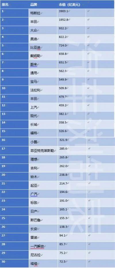 上图是盖世汽车整理的2021年全球汽车市值排行榜单,一共纳入了35个品牌,与2020年的对比来看,除了新增Rivian之外,极星和ARVL也是首次出现在榜单之中,此外,还有印度的马恒达品牌。