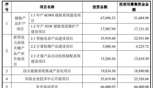具体来看,科陆电子年产6GWh储能系统建设项目拟投入6.71亿元,以募集资金投入5.17亿元,其余以自有资金投入。该子项目产品主要包括面向电力市场的全功能独立储能电站系统、能量型储能系统、功率型储能系统、通信基站电源系统、移动储能系统、分布式小储能系统、储能专用电池管理系统BMS、储能能量管理系统EMS等,可广泛用于电网侧缓解电网高峰负荷供电压力、延缓输配电扩容升级、应急供电保障;电源侧火电厂联合调频、新能源配套储能;分布式储能聚集虚拟电厂、共享储能、无电地区微电网、动力电池梯次利用等领域。