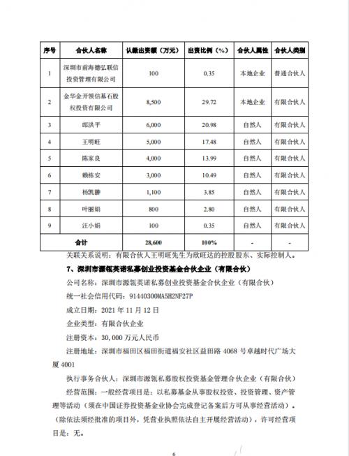 公告内容显示,欣旺达全资子公司深圳市前海弘盛技术有限公司拟与金华金开德弘毕方贰号投资中心(有限合伙)、深圳市源瓴英诺私募创业投资基金合伙企业(有限合伙)、深圳市红土一号私募股权投资基金合伙企业(有限合伙)、深圳市创新投资集团有限公司、天津力神电池股份有限公司、川商壹号(青岛)创业投资基金合伙企业(有限合伙)、伙伴壹号(青岛)股权投资合伙企业(有限合伙)等合计投资1.6亿元认购深圳惠科新材料有限公司(下称:“惠科新材料”)的股权,其中前海弘盛投资2000万元。增资完成后,前海弘盛持有其1.1364%股权。