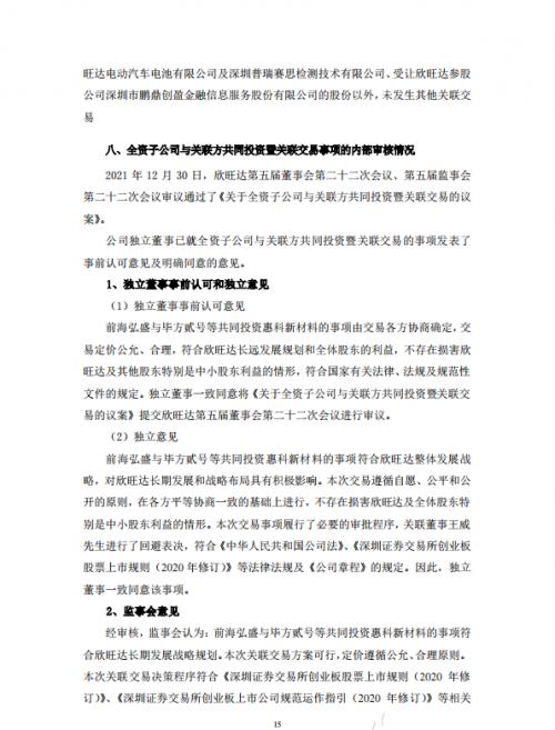 欣旺达表示:“本次交易有利于欣旺达电池业务及惠科新材料业务的协同发展。本次投资不影响欣旺达正常的生产经营活动,不会对欣旺达财务及生产经营状况产生重大不利影响,不存在损害欣旺达及全体股东利益的情形。”
