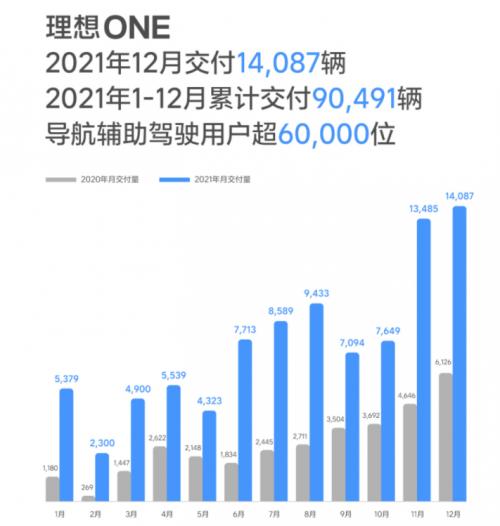 最近又发布了2021年度成绩,以一款车型,迈入“9万辆”大关,和小鹏(98155辆)、蔚来(98155辆)平起平坐。单拎出来,理想ONE则是新势力中唯一一款能月销破万的车型。