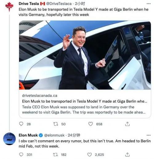 马斯克也曾在个人社交媒体对网友回复道,“将会在2月前往德国,庆祝顺利开工。”