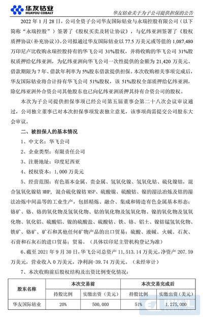 电车汇消息:1月28日,华友钴业公告,全资子公司华友国际钴业与其他合资方共同投资合资公司华飞公司,合资公司在印度尼西亚Weda Bay工业园区建设红土镍矿湿法冶炼项目,项目建设总投资约为20.8亿美元,项目生产规模为年产约12万吨镍金属量和约1.5万吨钴金属量的产品。