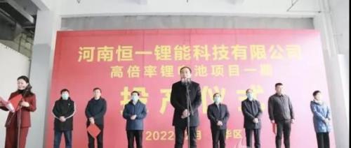 2月6日,河南恒一锂能科技有限公司(简称“恒一锂能”)高倍率锂电池项目一期投产仪式在平顶山市新华区高新技术产业园区举行。