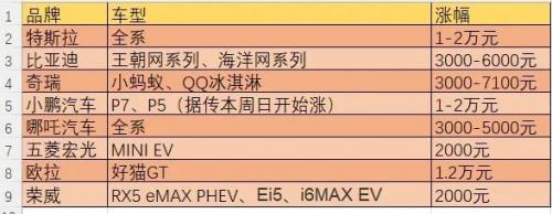 据不完全统计,包括特斯拉、比亚迪、蔚来、欧拉、五菱宏光MINI EV等几乎所有电动汽车品牌在内,都公布了不同幅度的涨价计划。其中特斯拉更是八天三连涨,最大涨幅高达2万元。