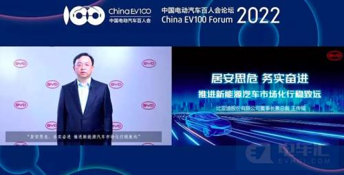 电车汇消息:3月26日,在2022中国电动汽车百人会论坛中,比亚迪股份有限公司董事长兼总裁王传福发表了《居安思危、务实奋进,推进新能源汽车市场化行稳致远》演讲,以下为讲话全文: