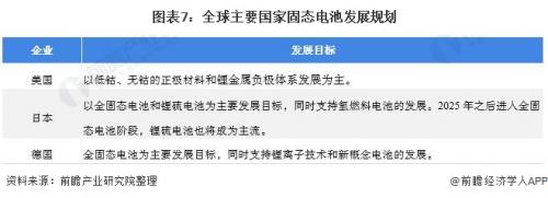 固态电池作为未来锂电池的发展方向,同时也受到了各国政策规划的支持,其中发展规划较为完善的主要有美国、日本和德国。其中,日本与德国以全固态电池为发展目标,同时也谋求其他新概念电池的发展,而美国则致力于成本的降低,以及新型正极材料的应用。