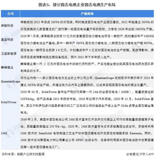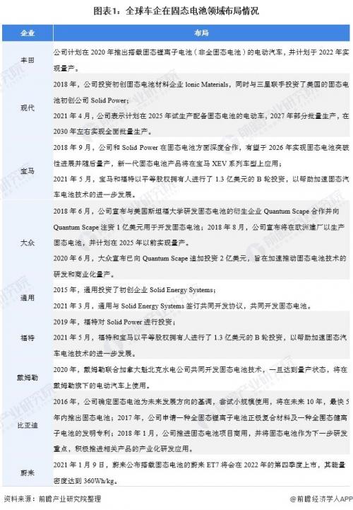 事实上,全球早就有多家动力电池企业和高校科研院所在致力于固态电池技术,已有多家固态电池企业实现试产。国内方面,辉能科技和卫蓝新能源的固态电池产线有望在2021年实现量产,辉能科技有望在2022年实现第一批固态电池量产车的投放;国外方面,2020年10月,Solid Power宣布生产和交付其第一代2Ah的全固态电池(ASSB),准备2021年投放市场,2026年应用于汽车领域。