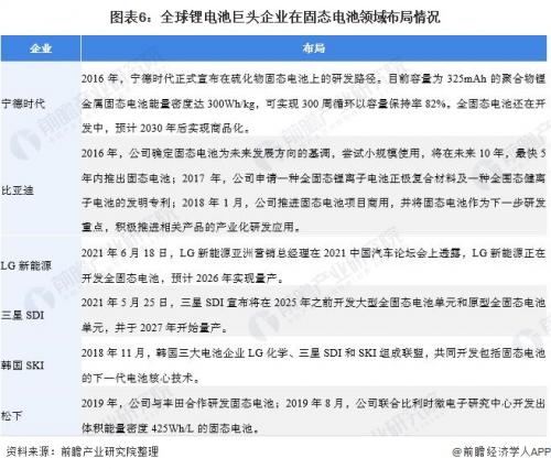 除固态电池企业外,全球锂电池巨头企业也早在在固态电池领域布局,但量产时间整体晚于固态电池企业。其中,LG新能源公司有望在2026年实现量产,成为锂电巨头中最早量产的企业。