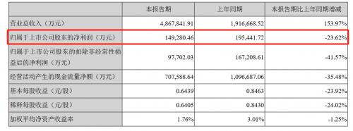 日前,宁德时代发布了2022年第一季度业绩报告。报告期内,宁德时代实现营业总收入486.78亿元,同比增长153.97%;实现归母净利润14.93亿元,同比下降23.62%;实现扣非后净利润9.77亿元,同比下降41.57%。
