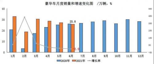 值得关注的是,6月,豪华车的产销量也出现同比下滑。6月,国内生产的豪华车销量为25.8万辆,同比下降2.0%。1-6月,国内生产的豪华车销量为165.8万辆,同比增长41.5%,高于乘用车累计销量增速14.5个百分点。陈士华表示,今年以来,豪华车一直保持较快增长态势,但6月下降2个百分点,这与芯片供应不足有关。他同时强调了芯片断供等因素对我国汽车工业的影响,“如果扣除芯片等因素影响,上半年我国汽车产销量是基本与2019年持平的。”陈士华说。
