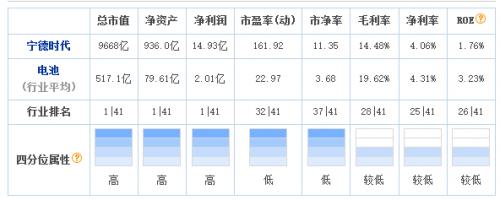再看宁德时代,一季度毛利率、净利率、净资产收益率均低于电池行业平均水平。其中,净利率仅为4.06%,远低于去年同期的13.7%。