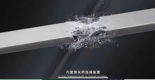 还有另外一个应用场景,可以在非冷却液通道中填充弹性材料,可以实现口琴管板形变后的回弹功能,或者增加支撑强度的功能。宁德时代官方视频中所述的“内置微米桥连接装置”,个人认为是某种高弹性的高分子材料。麒麟电池将这种弹性材料填充部分的冷却板通道中,起到缓冲的功能。