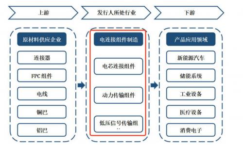 壹连科技成立于2011年12月,是一家集电连接组件研发、设计、生产、销售、服务于一体的产品及解决方案提供商,主营产品电连接组件是新能源等行业的上游配套产品,产品形态的发展与下游领域需求的变化密切相关,其应用场景包括汽车动力电池系统以及整车系统,是新能源汽车的中枢神经系统,也是新能源汽车动力传输、信号输送的载体。