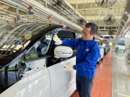 上汽通用五菱宝骏基地新能源汽车生产线(央广网发记者罗兰摄)五年来,柳州市五县五区新能源汽车保有量12.5万辆,相应地,柳州市本地车企的新能源汽车产销也随之大幅提升,2021年突破48.4万辆,为“十三五”时期4年产销总量的1.6倍,约占全国产销总量的1/7。柳州市被誉为“电动汽车之都”。