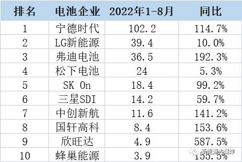 以2022年前八个月的动力电池装机量排行榜而言,公司还是没能入选前十。