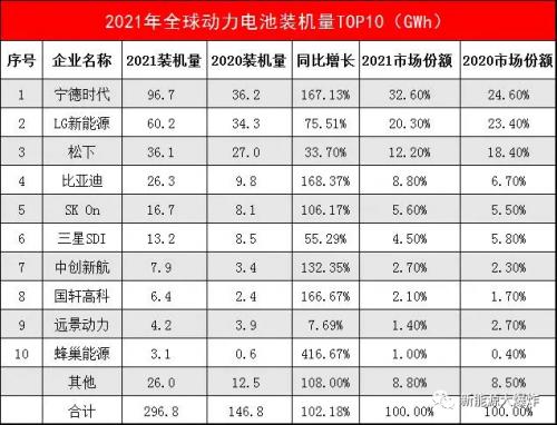 比如根据韩国市场研究机构SNE Research 2021年全球动力电池装机量排行榜,亿纬锂能未能位列其中。