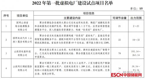 中国储能网讯:山西省能源局公示了2022年第一批虚拟电厂建设试点项目名单。