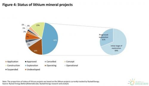 截至今年10月中旬,在睿咨得能源跟踪的238个锂项目,仅16%左右正式投产,近50%仍在勘探中。在勘探项目中,约70%仍处于初步勘探阶段,这意味着在2031年之前,这些项目可能的增量还没有被统计到估计的已知总供应量中(见图4)。而这些项目的勘探和开发可能会加快,并且在未来10年中补充到总的供应量中。