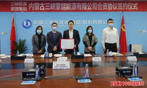 三峡能源总经理、党委副书记张龙与蒙能集团总经理、党委副书记李文忠代表双方签署协议。根据协议内容,由三峡能源控股的内蒙古三峡陆上新能源投资有限公司与蒙能集团合资成立内蒙古三峡蒙能能源有限公司,合作开展风光基地项目投资建设和运营。合资公司已于当日完成工商注册。