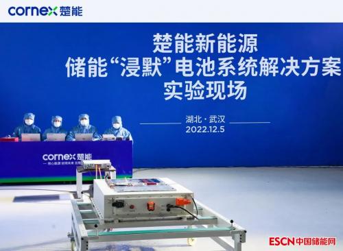 中国储能网讯:12月5日,楚能新能源在储能行业首创“浸默”电池系统发布,并在武汉江夏基地进行该系统安全性能实验。湖北省消防救援总队委派相关业务人员,莅临楚能新能源进行现场观摩指导。楚能新能源总裁黄锋、执行副总裁卜相楠、副总裁杜莹莹、副总裁朱小平及相关部门负责人参加活动。