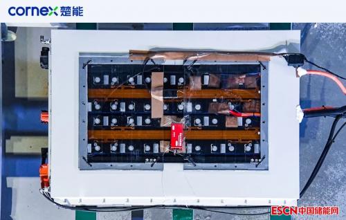 楚能新能源此次首发的“浸默”电池系统方案,可有效解决PACK箱内部电池的热蔓延问题。“浸默”电池系统主要应用于标准的20尺预制舱,包含“浸默”液冷PACK箱、液冷系统、消防系统、汇流柜等。其中,消防系统不再采用全氟己酮等粉末类介质,而是采用液态消防介质,可在3分钟内将有发生热失控报警的液冷PACK箱完全浸没,通过快速降温以及局部窒息手段,阻断热失控电池的进一步反应,使得电池间以及PACK间不再有热蔓延,实现精准、快速的消防,抑制热失控持续恶化,降低失控风险。