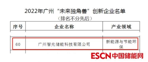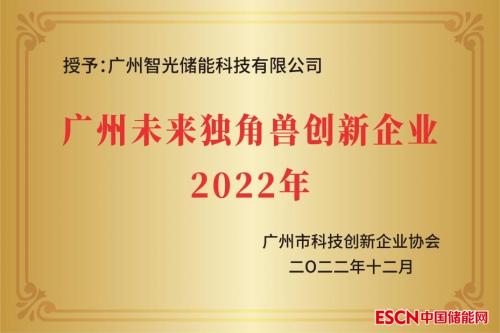 中国储能网讯:2022年12月9日,广州市科技创新企业协会发布关于2022年广州“独角兽”创新企业榜单遴选结果的公示,广州智光电气股份有限公司控股企业广州智光储能科技有限公司(以下简称“智光储能”)荣获2022年广州“未来独角兽“创新企业荣誉称号!