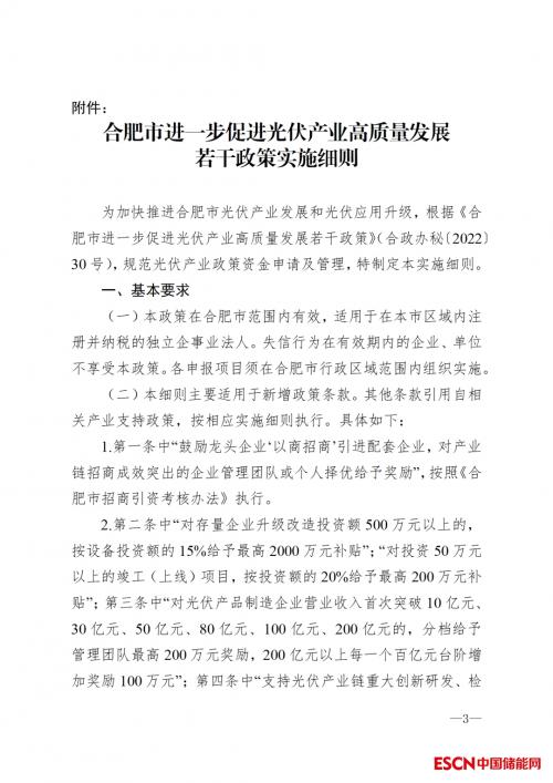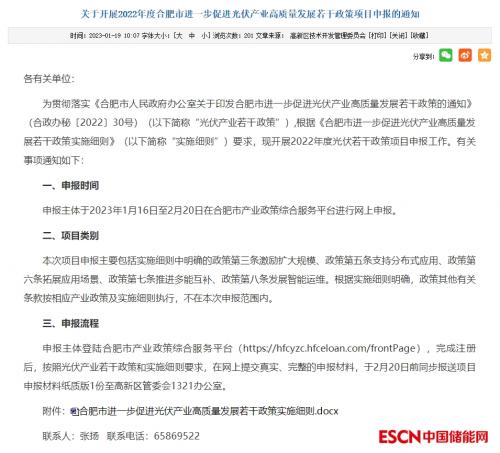 中国储能网讯:近日,安徽省合肥高新区技术开发管理委员会发布关于开展2022年度合肥市进一步促进光伏产业高质量发展若干政策项目申报的通知。