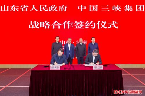 中国储能网讯:2月2日,三峡集团与山东省政府在济南签署深化战略合作协议。山东省委书记、省人大常委会主任林武,省委副书记、省长周乃翔与三峡集团董事长、党组书记雷鸣山,总经理、党组副书记韩君共同见证协议签署。山东省委常委、副省长曾赞荣,三峡集团副总经理、党组成员王良友分别代表双方签署协议。山东省委常委、省委秘书长张海波,副省长、政府秘书长、办公厅党组书记宋军继参加签约仪式。