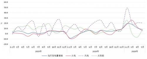 根据国家统计局数据,1~5月,全国规模以上电厂发电量3.18万亿千瓦时,同比增长14.9%。5月当月,火电同比增长5.6%,两年平均增长7.3%;水电增长12.1%,两年平均下降3.3%;核电增长10.2%,两年平均增长12.2%;风电增长20.7%,两年平均增长12.7%;太阳能发电增长8.7%,两年平均增长7.9%。