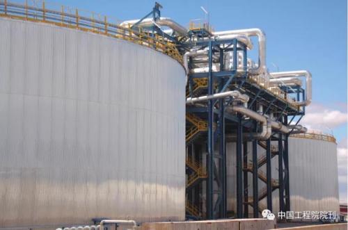 图3为位于西班牙的50MW Andasol 3号CSP电站中的双罐式熔盐储热系统,其使用了约28500t的太阳盐,储存的热量最多可供电站满负荷发电约7.5h。