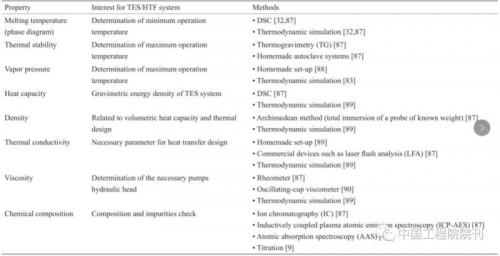 表3对于设计储热/导热系统至关重要的熔盐物性的测量以及热力学模拟方法