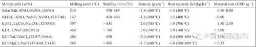 在这些候选的新型储热/导热材料中,熔融氯盐由于优良的热性能和低廉的材料价格被认为是下一代熔盐技术中最有希望的储热/导热材料,其可在高达750℃的温度下使用。