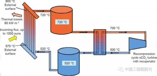 科研人员研发适用于565℃以上的新性储热/导热技术,并将它们和具有更高热电转换效率的动力循环(如sCO2动力循环)相结合。